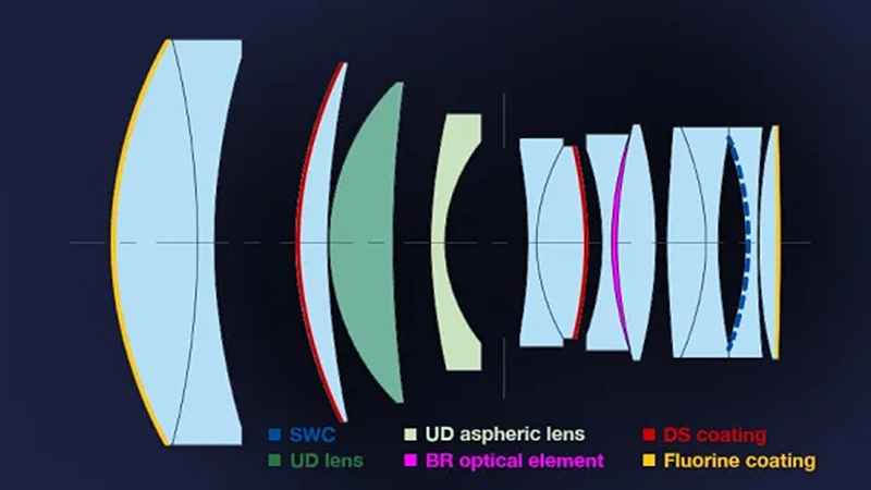 | Elements/construction | 13 elements in 9 groups (2x UD (inc 1x Asph UD*), 1x BR) |