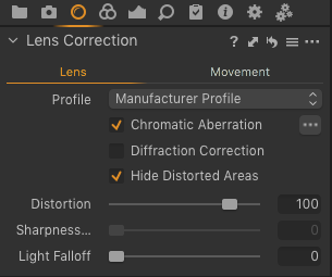 Capture One Pro can now also automatically apply lens corrections to all five current Nikkor Z mount models. It’s not clear at this time if the application can directly access the profile embedded in the RAW file, as it’s likely to be encrypted, or if it’s using an approximation from the DNG spec but images corrected this way display the “Manufacturer Profile” as a useful reminder in the Lens Correction tool. If necessary the profile correction can be turned off and corrected manually.