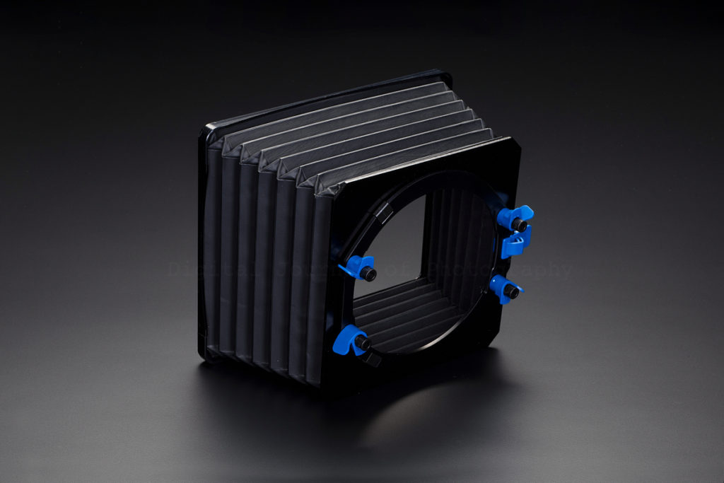 The 320g hood comes with an attachment ring that clips to the LEE100 Filter Holder using four locking tabs which can then locked in place using a single lever. This is then attached to the lens as normal with a threaded adaptor ring.
