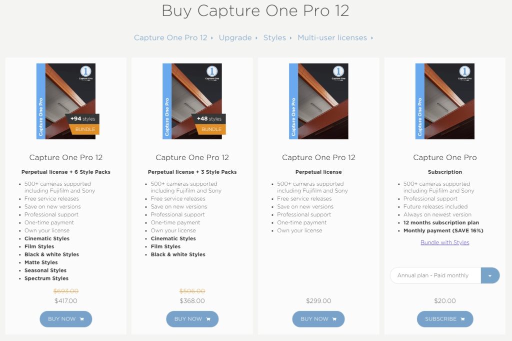 The offer is available on the following Capture One Pro 12 licenses (single user, perpetual) and Styles Packs: