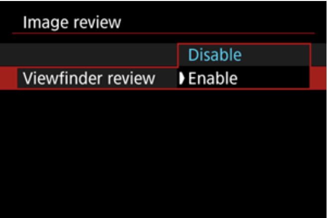 – Select Hold to review indefinitely (this is ideal for landscapes or other non-time-critical genres) or until you depress the shutter button halfway; otherwise, select the time for review (2,4, or 8 seconds). Selecting Off prevents automatic display in the EVF, but if you depress the playback button (i.e., select playback manually), the image will then be displayed in the EVF.